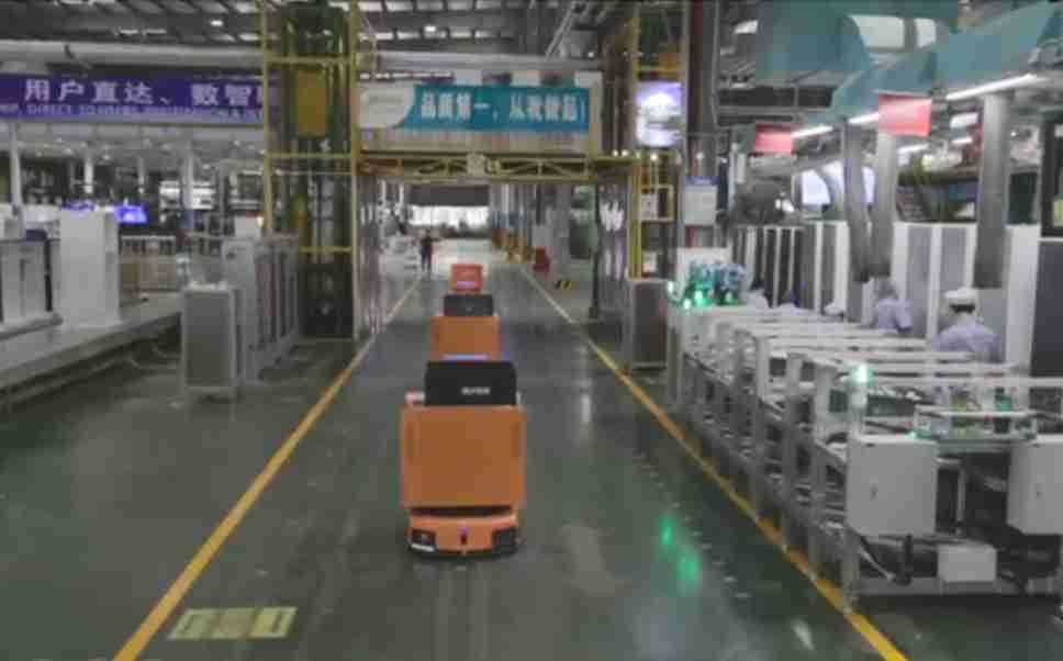 为车载冰箱物流配送打造的智能解决方案,,,包含产中物流通过潜伏举升AMR搬运至线边,,,,产后成品物流智能仓储,,,流程包含产中物流智能齐套入库,,,线边安灯叫料AMR智能配送至线边,,,,成品入库、、出库,,,,通过无人堆高车机器人,,,智能仓储管理替代人工作业管理,,,实现更高存储、、更高效率、、、、更具柔性化的解决方案。。。